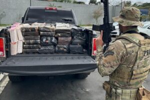 A Polícia Rodoviária Federal apreendeu hoje (02) cerca de 1 tonelada de maconha na BR-277, em Porto Amazonas, região dos Campos Gerais do Paraná. A
