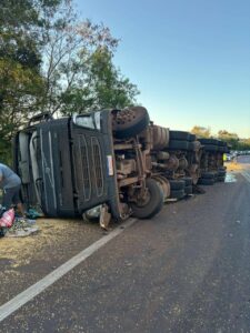 Por volta das 17:40h no dia 29 de março Bombeiros de Capitão atenderam um acidente de trânsito do tipo, tombamento de carreta carregada com soja,